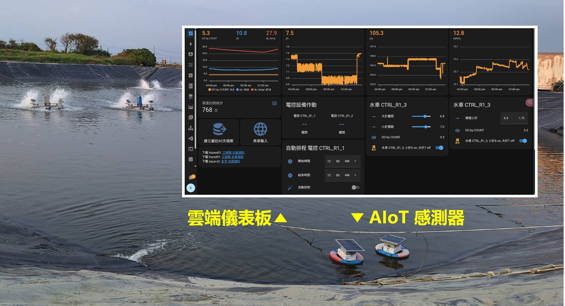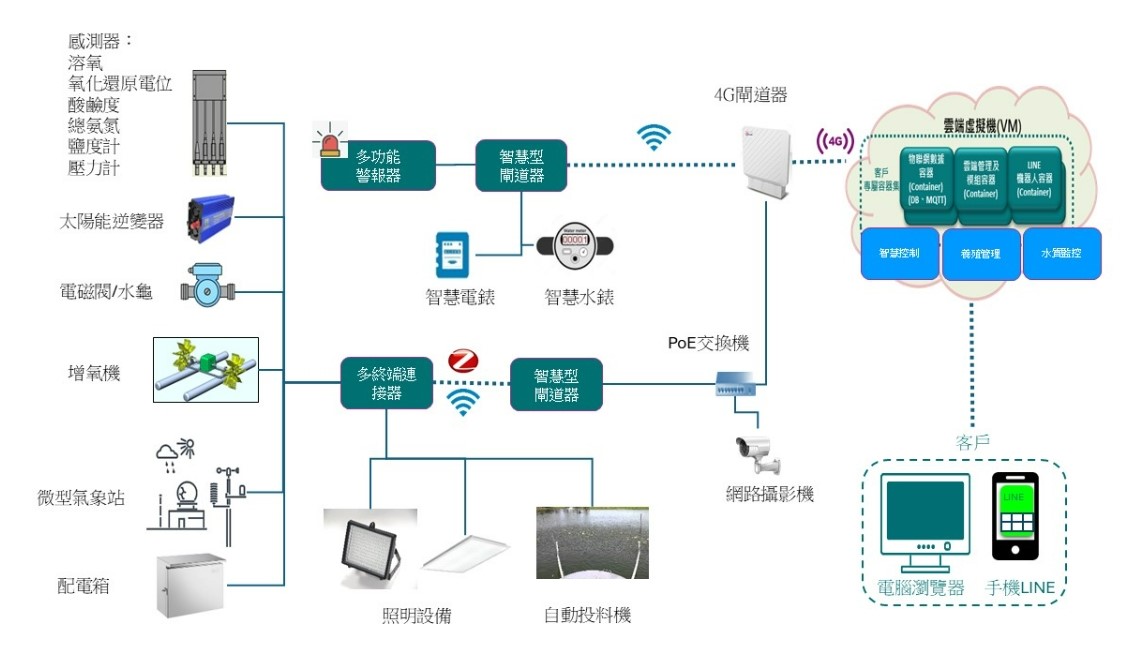 多模感測與自動化控制:結合水質監測、水處理、影像監視與電力控制等模組,有效提升現場資源使用效率,並大幅減輕巡池、維護等日常勞務負擔。
