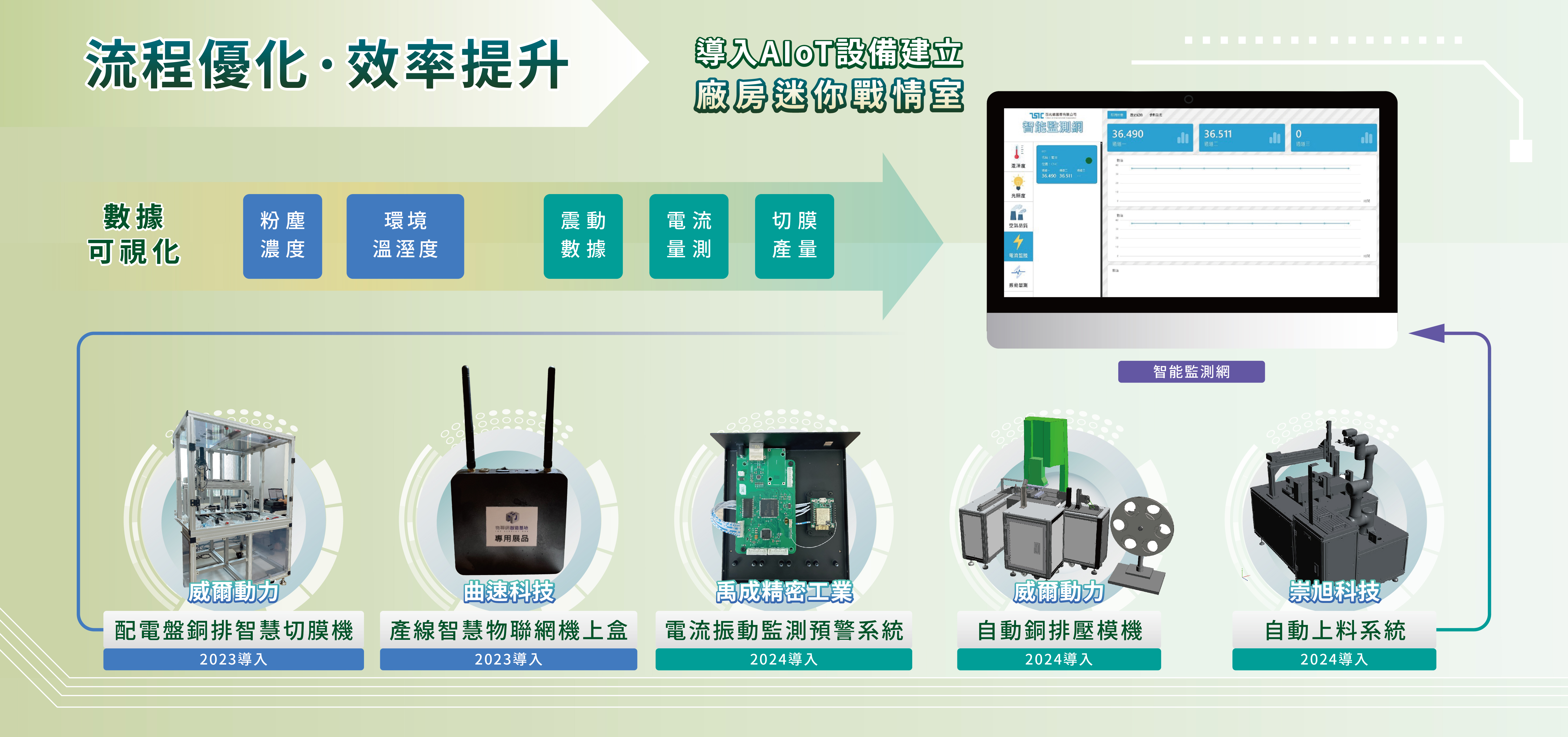 製造產業為臺灣經濟重要組成,其中配電盤業者多達200家,產值上看150億。配電盤製程工序繁多,其中導電銅排製造加工流程更是複雜,大都仰賴人力作業為主,費時費力。自2023年導入智慧化解決方案,邁向智慧且安全的自動化生產。