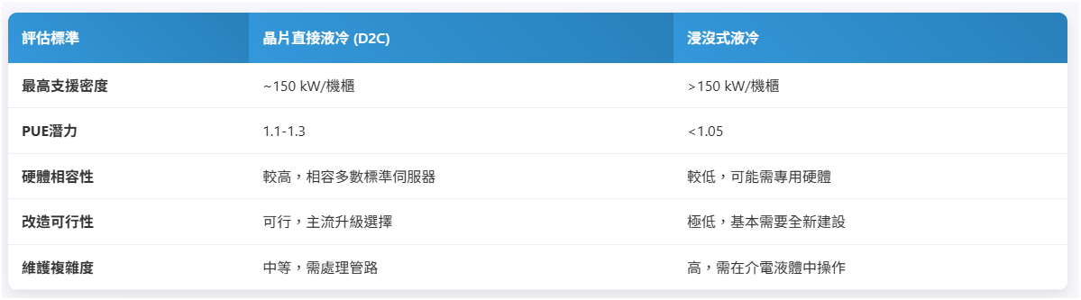 圖3:晶片直接液冷及浸沒式液冷之比較