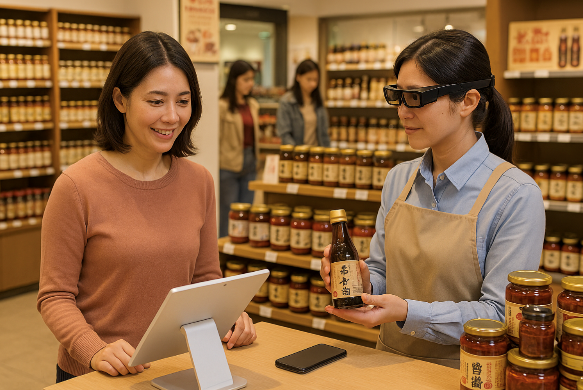 對觀光食品工廠來說,受限於現場人力不足,無法顧及到所有顧客需求時,透過AR眼鏡提供最棒的行銷模式,可讓前往購物的顧客,自行選擇採買的喜好方式,更能延長購物停留時間及提升銷售滿意度。商家更能透過後臺數據蒐集、導入商品管理系統,了解熱門商品詢問度、互動體感,調整後續行銷決策,提升再購率。