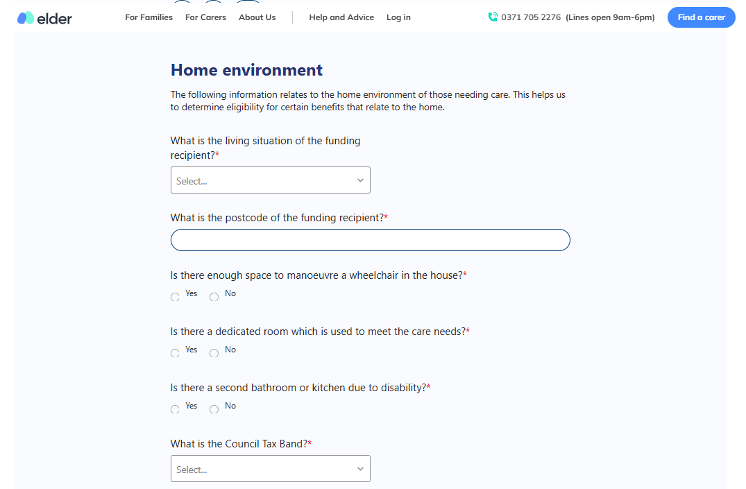 回答幾個個人資訊、護理需求、財務狀況的問題即可評估護理資金,同時幫助用戶評估有無政府補助資格並安排相關護理服務。
