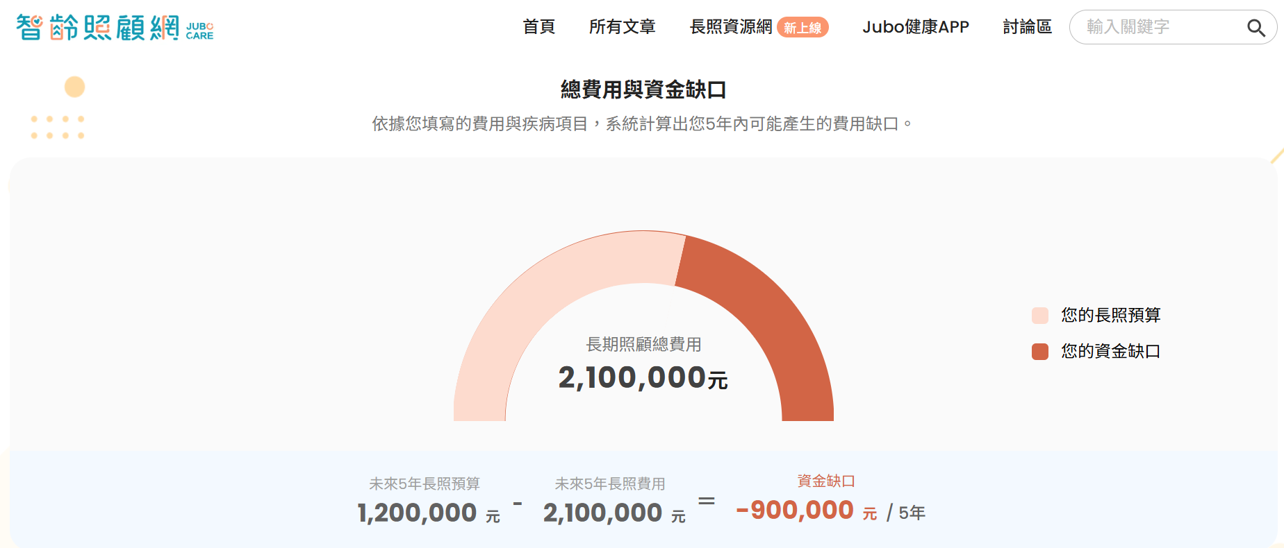 6. JUBO 智齡科技。長照費用支多少?一分鐘測出你的長照成本。智齡照顧網。https://www.jubo-care.com/prediction
