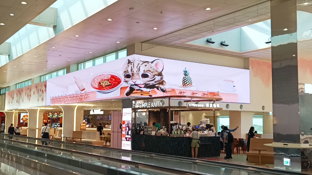圖1:桃園機場免稅商場導入大型沉浸式LED顯示牆,結合美食與互動科技,打造智慧購物新體驗