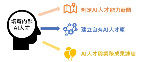 AI人才與業務成果連結:不將AI人才定位為「技術支援」或「開發人員」,而是讓他們能與實務接軌,透過AI創造具體的績效與價值。