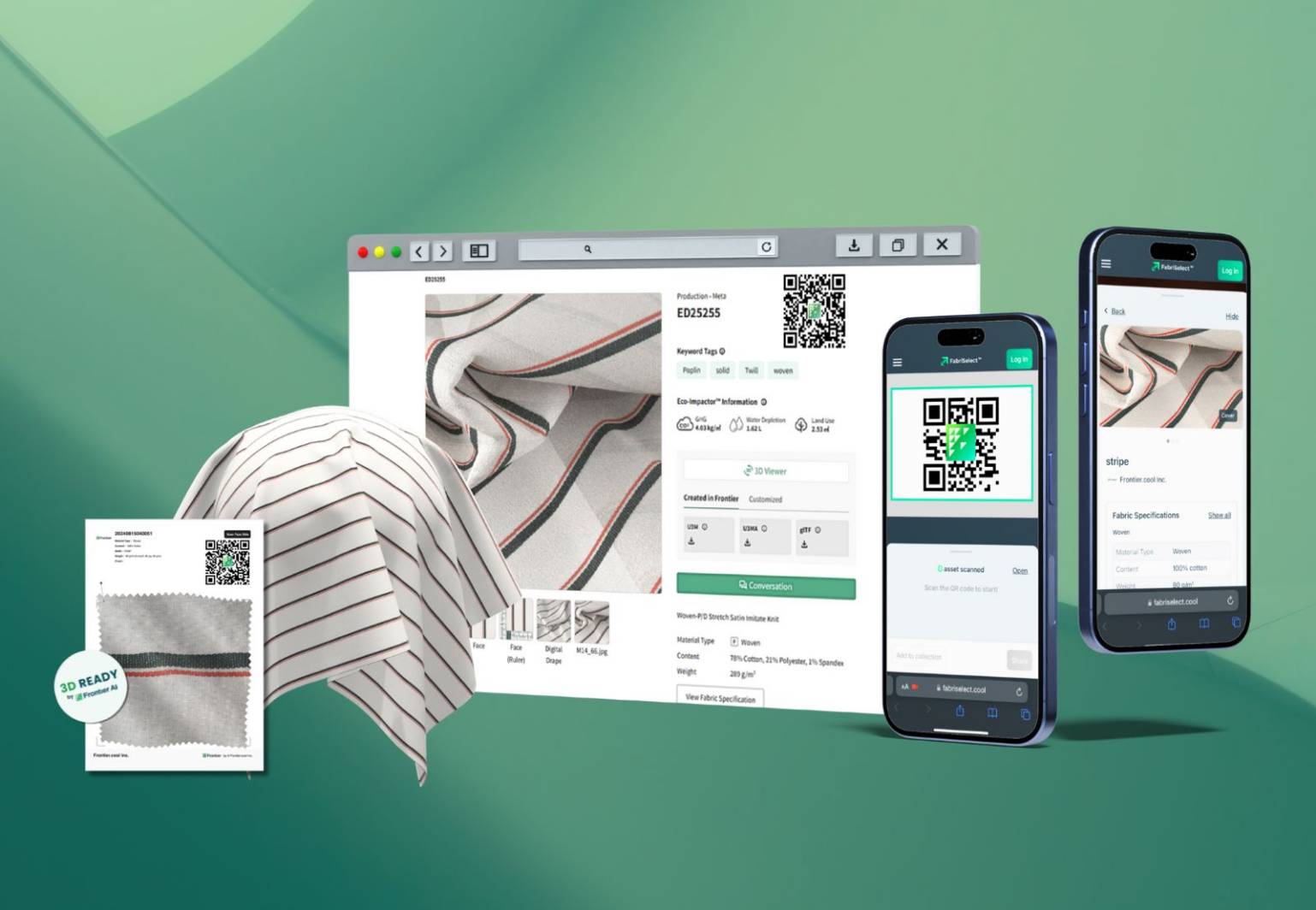 圖3:Frontier.cool 將布料數位化為可追蹤的 3D 素材,實現材料與永續數據一站式管理。