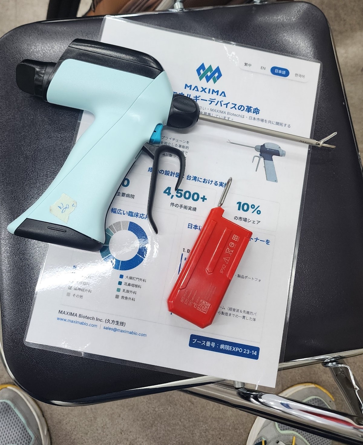 圖2:久方生技於 Medical Japan 展會初次公開以台灣創新迴圈所開發之第二代無線超音波刀雛型