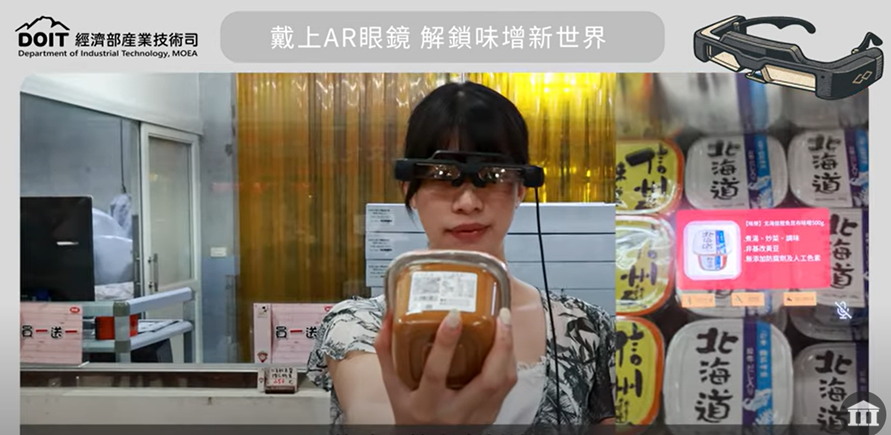 相較於單純的硬體突破,更令人矚目的,是 AI+AR 在真實場域中的應用實證。今年在經濟部產業技術司的支持下,資策會於2025年9月攜手味噌觀光工廠與相關業者,導入AR智慧導購應用服務,結合多模態互動協作優化技術,整合AR智慧眼鏡、EdgeAI運算、LLM(大型語言模型)與RAG(檢索增強生成) 技術。民眾配戴眼鏡後,可透過即時AI影像辨識,獲取商品資訊與優惠訊息,並結合多模態互動AI協作如:眼動控制、聲控指令與手勢操作,這樣的設計使參觀者能以最自然的方式完成導覽互動與商品選購。