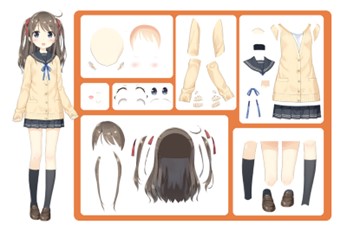 圖2 分層素材,包含髮型、臉、耳朵、衣服等各部件 2D 模型師常用的切片形式