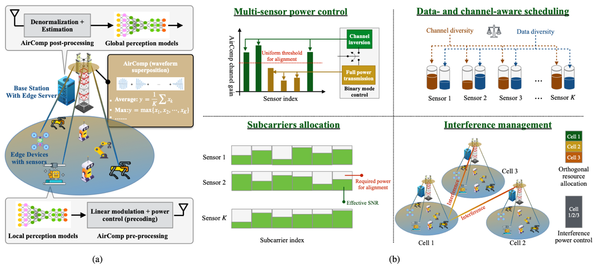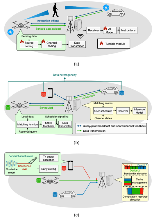 如圖5所示的數位空中介面技術包含三個核心部分:(a)聯合來源通道編碼技術將感測資料的編碼與通道傳輸進行聯合優化,針對特定ISEA任務需求進行端到端訓練。(b)智慧存取控制機制基於資料語意重要性和通道狀態進行動態調度。(c)無線電資源管理技術實現功率控制、頻寬分配和運算資源調度的統一協調管理。