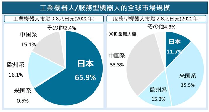 在此背景下,自動化需求迫在眉睫。雖然日本曾掌握全球工業機器人約七成的市佔率,但近年來優勢正逐漸流失;在具備高度成長潛力的服務型機器人領域,日本更面臨來自歐美與中國的強力競爭。