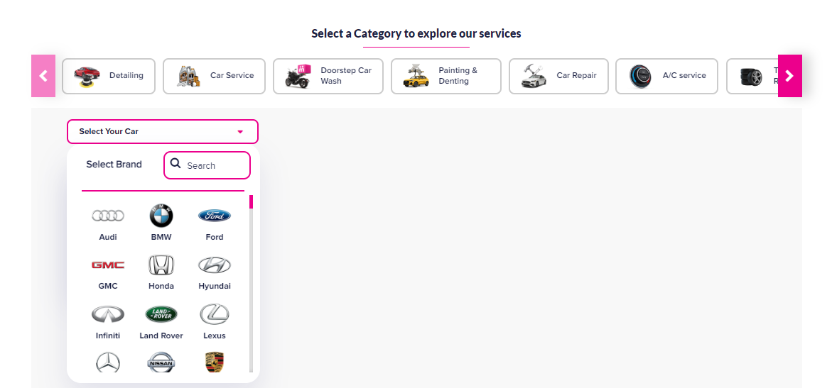 2. 挑選服務:車主可依據愛車品牌、型號,挑選適合的服務。