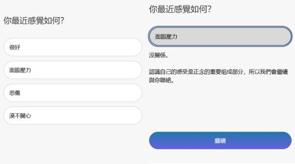 圖2:使用者選擇當前情緒狀態(如焦慮、倦怠、壓力大)