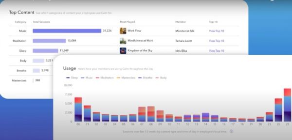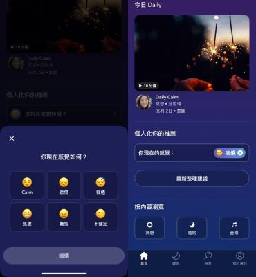 使用者可透過網站或App設定個人狀態與需求,系統即依據壓力來源、冥想經驗、冥想時段等條件,推薦適合的冥想、助眠故事、音樂;而Calm Business則協助企業掌握員工心理健康狀態,並根據回饋提供適切的療癒資源,涵蓋個人與企業端完整使用情境。