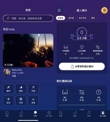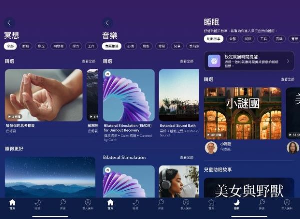 使用者登入帳號後,可開始體驗個人化的冥想、睡前故事或正念練習內容。