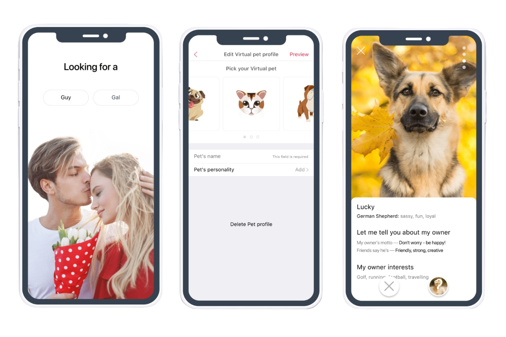 使用者登入後,首先映入眼簾的不是對方的自拍照,而是他們可愛寵物的照片。透過這樣的設計,彼此能從共同的毛孩話題開啟對話,逐步揭開對方主人的資訊,建立起自然又真誠的連結。FetchaDate 以「讓寵物當媒人」為概念,巧妙化解初次互動的尷尬,並提高配對的成功率,讓每一次邂逅都從對動物的真愛開始。