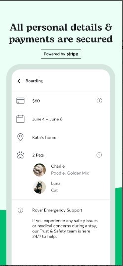 Rover透過雙向評價系統,提供嚴格的保母篩選機制,讓飼主能放心將寵物交給專業的保母照顧,解決飼主對陌生人照顧寵物的顧慮,成為現代飼主信賴的寵物照顧平臺。
