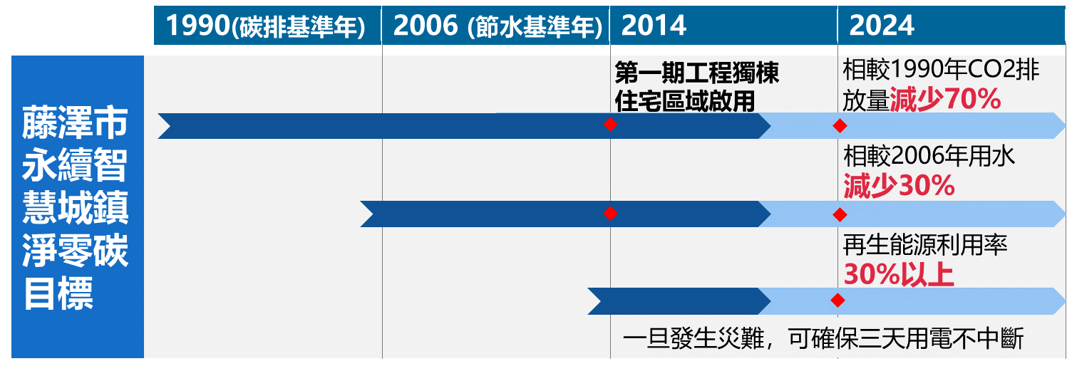 圖 3:藤澤市永續智慧社區淨零碳目標與推動期程